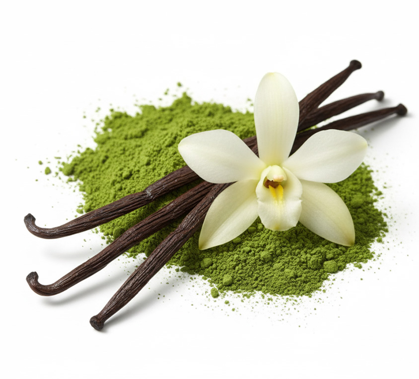 Matcha japońska, naturalny aromat wanilii (8%).
