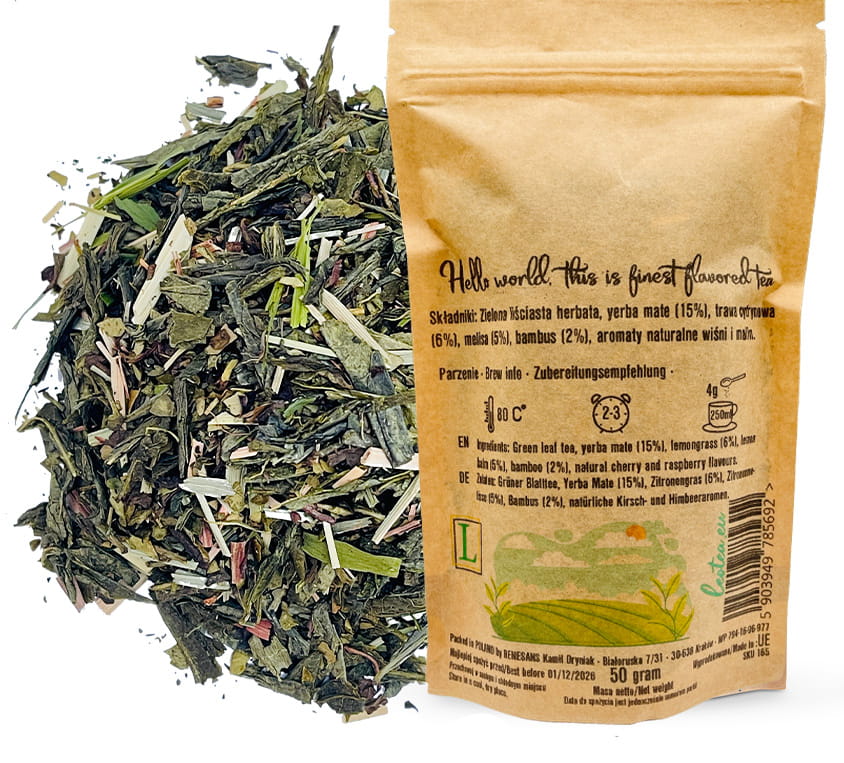- połączenie zielonej herbaty liściastej z yerba mate i nutą czerwonych owoców